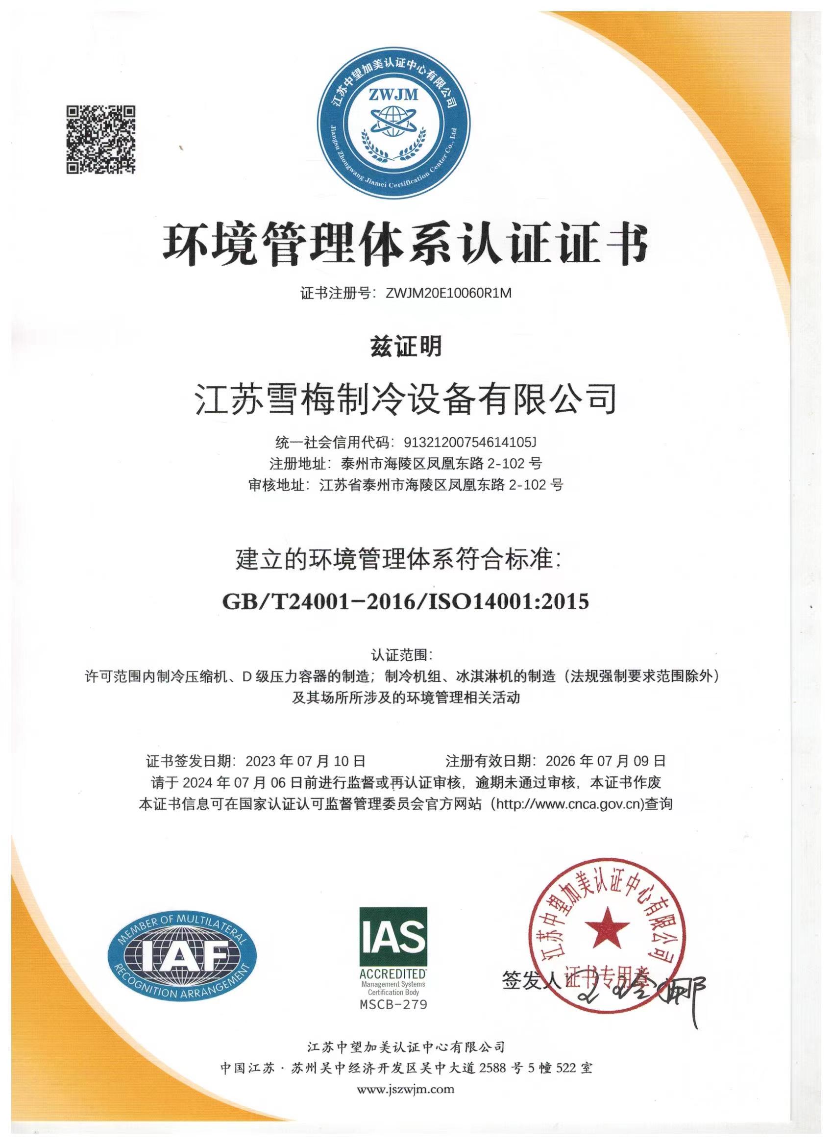 江蘇雪梅制冷設(shè)備有限公司